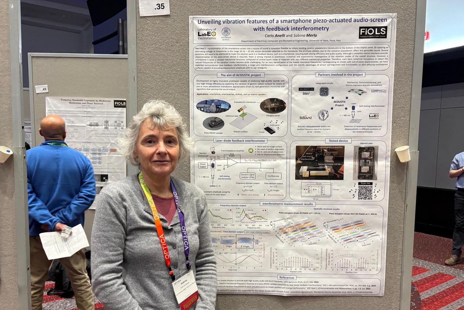 Sabina Merlo has presented at the Frontiers in Optics + Laser Science 2025 Conference organized in Denver, our work about: “Unveiling vibration features of a smartphone piezo-actuated audio-screen with feedback interferometry”.